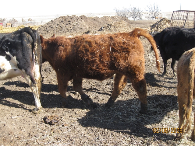 Red steer, long weaned, 700 lbs., has big front knees, hardly noticeable, will feed out nice, $1700, call or text or message here, 785-743-8o65