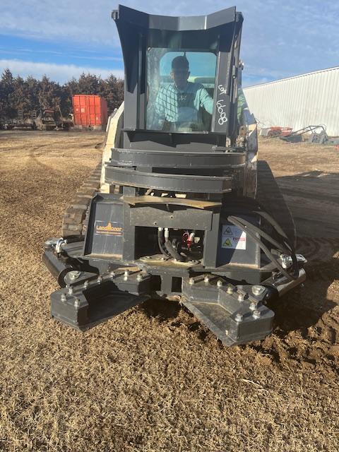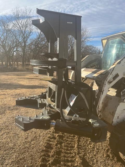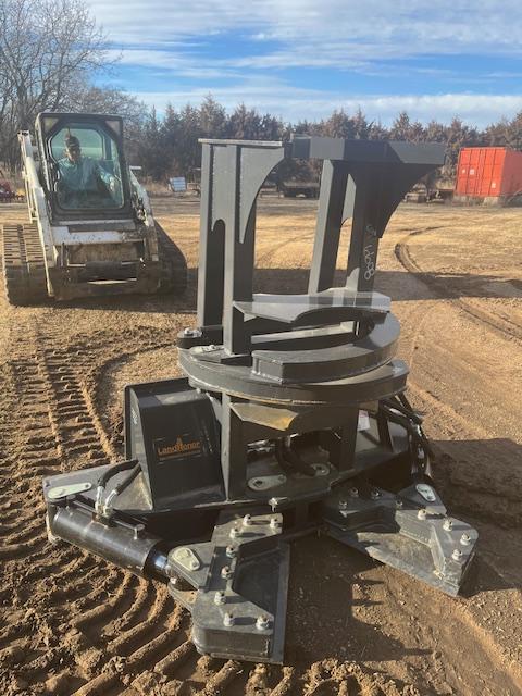 2025 Land Honor Tree Shear Skid Steer Attachment, universal skid steer mounting plate, 20" blades, hoses, flat faced couplers, unused.Call Darvin at (785) 826-3132. No texts.