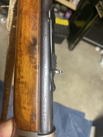 The model 64 is an 1894 action with pistol grip stock, half magazine and 24" barrel. This gun is all original, unmolested and shows nice patina. Date of manufacture is 1941. (785) two two six 3221