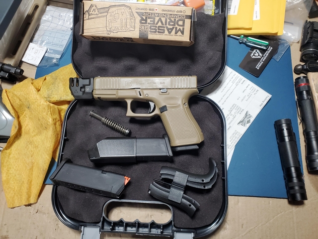 I have a new in the box sand 19 generation 5 comes with mass comp and binary trigger if wanted..