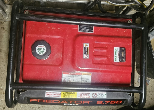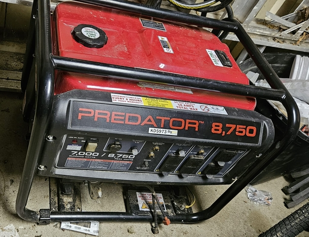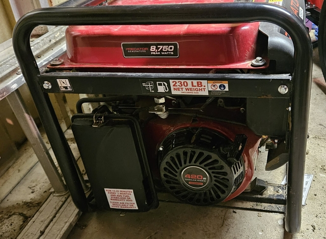 Lightly used Predator Portable Generator, 420cc Gasoline Engine, 7000 Watt, 8750 Peak Watts, 240v and 120v Outlets. Works great.