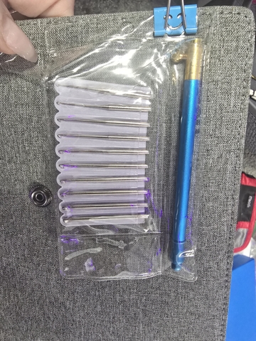 Set of steel crochet hooks for fine thread and lace crochet. Includes multiple small sizes stored in a clear zip pouch, plus a larger aluminum crochet hook. Perfect for doilies, lacework, thread projects, and detailed crochet.