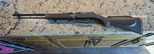 This air rifle still works great, doesn't leak any air. Only selling because I don't use it any more. Located near Marquette Kansas.