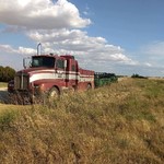 This is a homemade fuel trailer on a hay rack running gear. It is 14' by 3.5'. There is a 100 gallon fuel tank and a 50 gallon fuel tank in the trailer that are plumbed together. It has a 12 volt electric pump with on/off switch. Tires hold air but are very old. Wouldn't pull very far on them. Would haul on a trailer to get it home.
