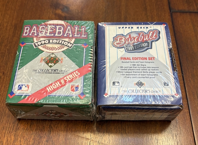 2 Upper Deck brand sets on baseball cards. One High # Series set from 1990 and one Final Edition set from 1991. These sets are both factory sealed. $20 cash located in Manhattan KS. Message me through this site first. Thanks!
