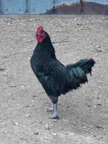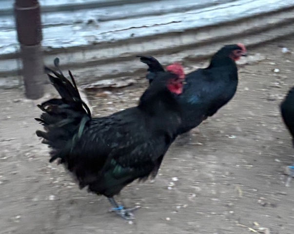 We have 3 young Black Australorp roosters that were supposed to be hens. The hens that were purchased at the same time are just starting to lay eggs, so they are about 6 months old. These roosters are not pets, they don't eat out of your hand, but they are not mean. They won't chase you around the yard! They all look the same. Will sell separately, or together. Price is per bird. Pick up at 4B Farms.