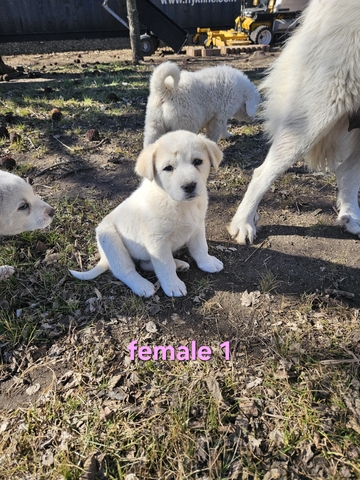 1 male, 2 female. Very loving little critters, a bit shy at first but they love attention! They will be 8 weeks old on February 12. Puppies have been in contact with cats, other dogs, chickens, and horses. Mom has decent lgd instincts.