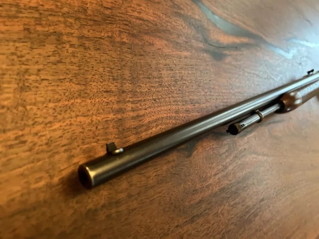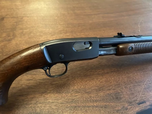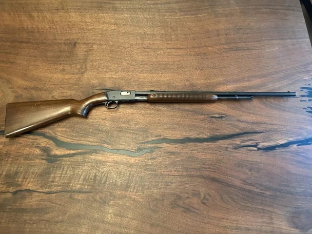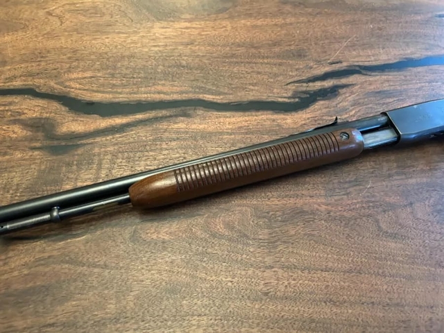 Nice clean all original finish Remington Model 121 pump action .22. Date codes to 1948 production. Excellent bore, action tight and crisp and works A1. Original sights. Finish flaws are a light patch of finish loss on left upper received and left side exterior barrel ahead of receiver. No cracks in the stocks, but some light rack wear on the right side postal grip. Beautifully made walnut and steel rifle made in the good old days to last.