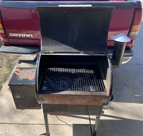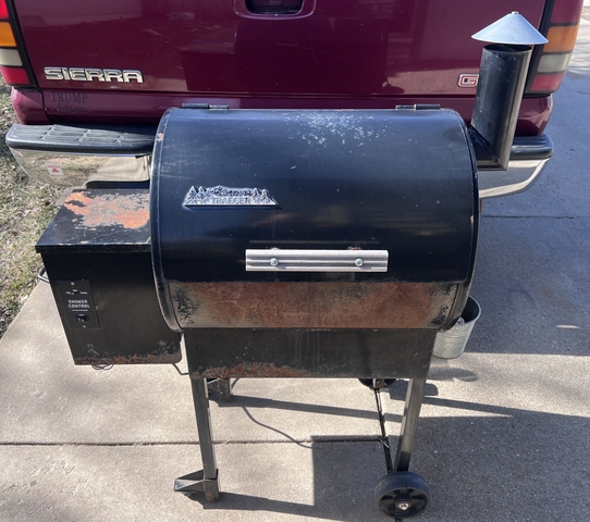 Have a Heavy Duty Traeger Wood Pellet BBQ Grill, that is ready to go! This is one of the first generation Traeger grills, so they have the heavy metal and are built to last!! Everything works as it should and fires up like it should. Has the Smoke/Med/High temperature settings for all different types of BBQ. Has some outside rust where paint is missing, but does not affect how grill works. Drip tray and heat shield are good, just covered drip tray with foil. (NO HOLDS)(No Deliveries)(CASH ONLY) LOCATED IN HAYS, KS