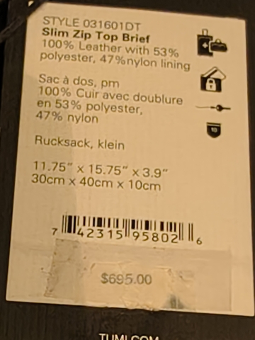 Beautifully made Tumi brief, very lightly used. Comes with its manufacturer's storage bag and warranty information. As new.