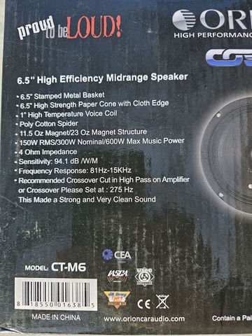 1 set of Orion Colbalt CT-M6 speakers, 6.5", 600watt