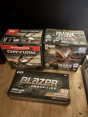 Duck and pheasant 12 gauge 3 inch shells/ 9mm ammo
