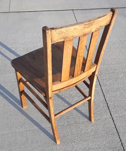 Wood Chair – $10.00 Selling an old wood chair. Dark hardwood. The finish is bad, but it could be refinished and re-stained to make it look good, or use it as functional old desk chair in the farm shed, car garage or work bench. Dimensions 34” tall, 17” wide, 15” deep.