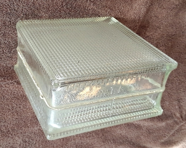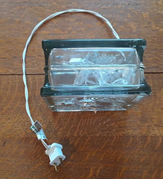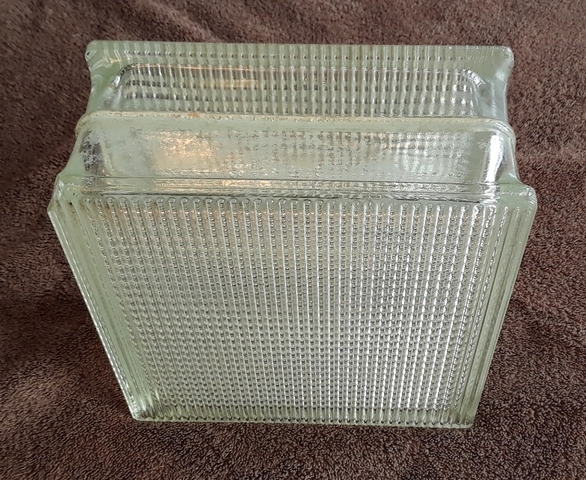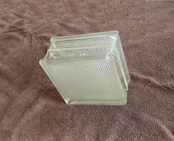 Glass Square Block - $8.00 Selling one (1) multi-use square glass block/brick with a abstract checkered board pattern texture. Dimensions: 7¾” x 7¾” x 4” Indoor or outdoor décor, craft and hobby uses and can be used to create a decorative light as shown in photos #5 & #6.