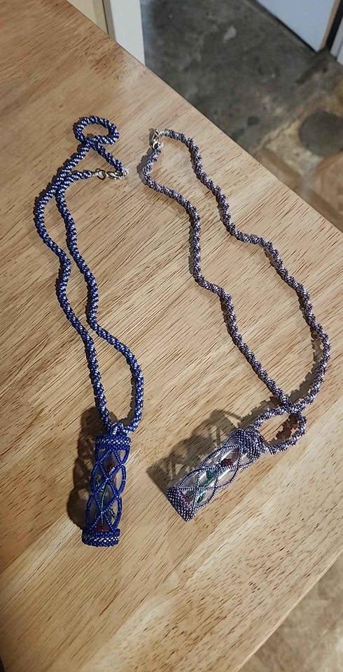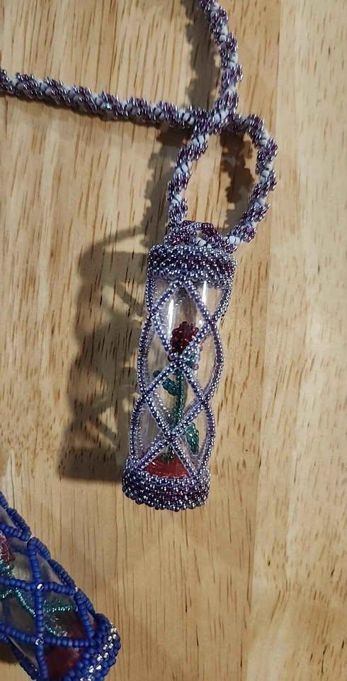 Handmade necklaces carefully beaded to create a beautiful chain and integrated pendant containing a rose at the very heart, except these pedals won't fall off!