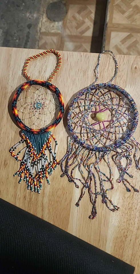 Hand made beaded dream catchers. These are hand made with countless hours of hand beadwork put into each of them.