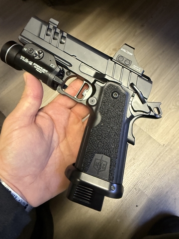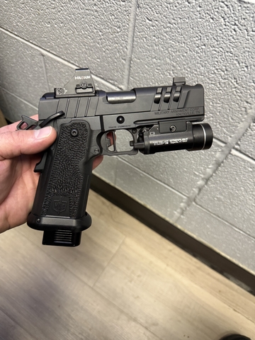I have a brand new never fired Mac DS9 comp 2011. The frame has been stippled, a new optic plate installed along with a Holosun 407k X2, new lighter recoil and mainsprings installed. Comes with the original bag and two mags. Flashlight is not included. Bought this and modified it to be a poor man's Staccato XC but haven't had time to run it. Text for fastest response, some trades considered but would rather have cash (970) seven six nine two 683. Thank you.