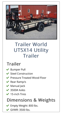 5'x14' utility trailer available to add on ($1,500)