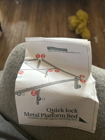 I got a queen size bed frame with the manual the parts be duct taped together and screws an manual in a ziplock bag.. if interested message through here please an thank you