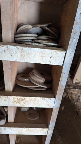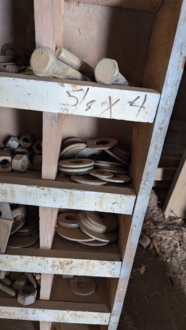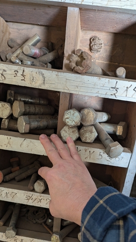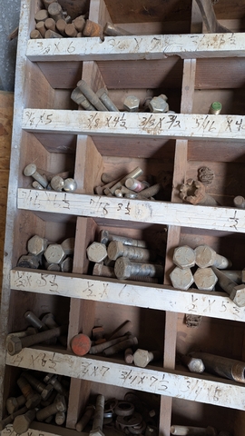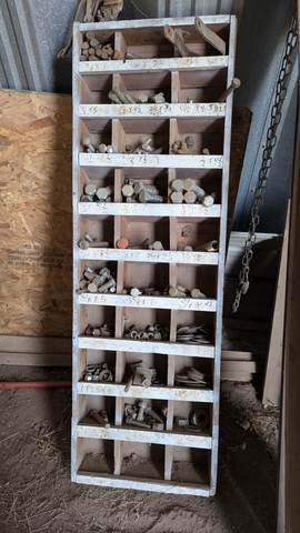 Large bolts, nuts etc with rack