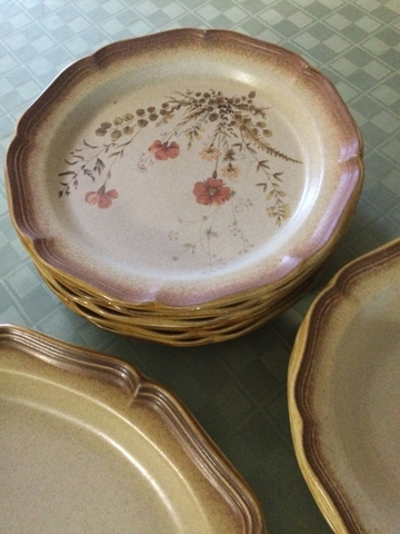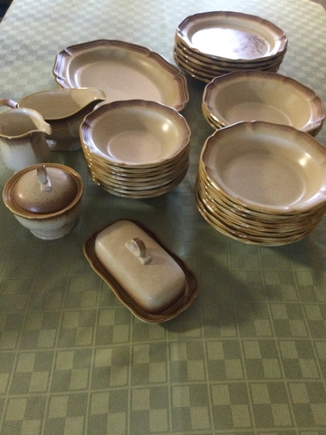 Mikasa dishes. 6 dinner plates, 3 serving bowls, 8 soup bowls, 8 dessert bowls, one large serving platter along with a gravy boat, creamer and sugar bowls, and a butter dish. Message me here or text 785-434-6337. Cash only. $25.00 OBRO