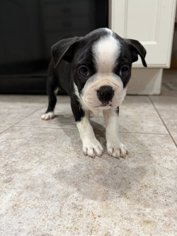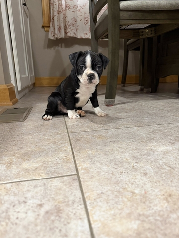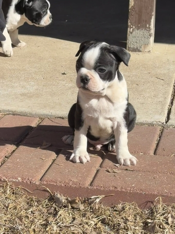 We have 2 male boston terrier pups available. They were born on Dec. 21st. They have been dewormed and had their first round of shots. They are ready to go to their forever homes! The first 2 pictures are the largest male of the litter. The last 2 pictures are of the smallest male of the litter. They have very sweet personalities and love to play.