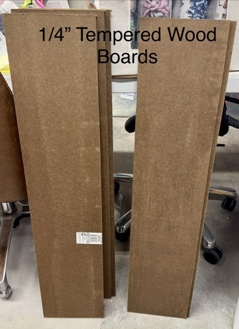 *6 boards-1/4” tempered wood boards 34”L x 7.5”W $6 takes all