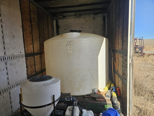 Spray Tender Trailer with 1500 gallon tank in the nose and 2750 gallon tank in the rear. Sprayer Specialties inductor with Honda electric start. All 3" plumbing. Built this setup 3 years ago and really hate to sell it but I am having to downsize sprayers and go a different route. Sorry about the mess in the trailer, I took pics before I got it cleaned out. Trailer has room for 4 totes. My original plan was to build a 4 tote cage where the barn doors are and then get a hose reel along with the inductor on the other side. Next buyer might have a different idea. I do have probably 20-30' of extra 3" hose the next owner can have. Only issue is the leg tank does have a small hole in it. I have used a poly welder to fix 90% of the hole. Tank probably needs to come out and see exactly where the hole is at to fix it 100%. I'll give the next owner the welder to get it fixed. Trailer has decent tires and brakes. Air ride. $15000 but can negotiate for a serious buyer. More pics available. 785-two three one-968five