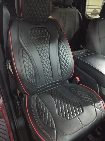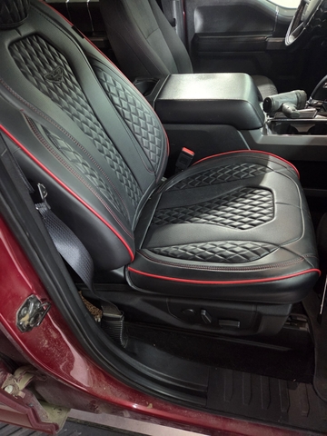 2 Coverado leather seat covers,black with red border, came out of 2019 F 150.