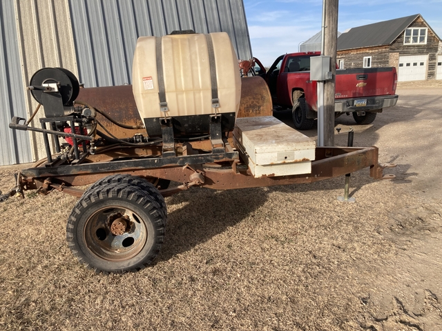 Pasture or fence line sprayer built by Simpson farm enterprises in Ransom several years ago. We mounted it onto an old 1 ton pickup frame trailer. 5.5 hp Honda engine. Boomless sprayer with 3 way shutoff and also has a hand sprayer with hose spool. 150 gallon tank. This unit has always been kept inside. Tires are old but do hold air. Would recommend hauling the unit on a trailer if you are not a local buyer due to the age of the tires, or bring spares. Call Mike at seven85-six50-nine908