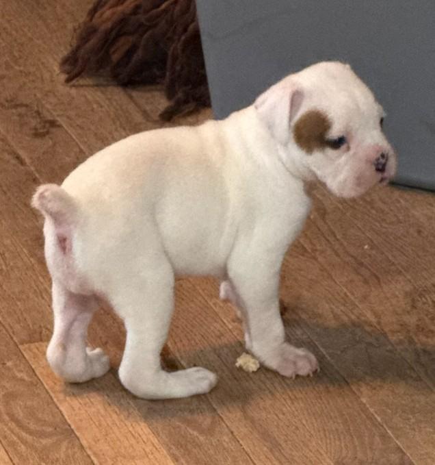 Born 1/30/26.. Tails cut, dew claws removed & will be up to date on shots when ready 4 new homes!! 2 females & one male. White female & chocolate female & fawn male. Pm or call if questions 620-680-0863. Thanks 4 looking. (ONLY 1 white female LEFT)