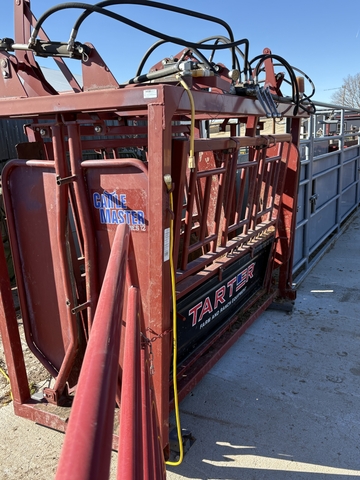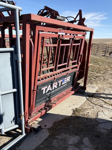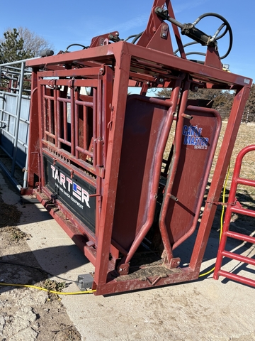 Tarter hydraulic chute, comes with breast bar, central city scales and a read out: 8 years old still in great shape just went with a new one! 785-470-7034