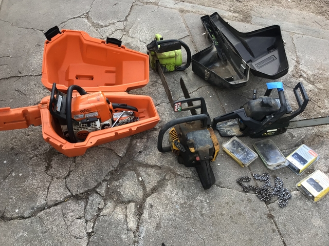 Items from a garage clean out. Everything included for one price. Small heavy built cabinet on rollers, 3 delco remy alternators. One is a new rebuilt in box, two are used, condition unknown. 4" Scout bench vise, sprinkler heads and parts, new 3" pvc fittings, old 7-up bottle, hinges and miscellaneous hardware, new and used garage door fittings, new $71 garage door opener gear kit, old wood handled monkey wrench. All for $25. Cash. Several things in this group r worth that by their self. Contact me here or at: six20792 five498. Keep trying, I'm sometimes hard to get. Click on my name above "484coyote" for more old junk. Update: This has not sold, so I'll add four chainsaws to the deal. Still the same cash price of $25. Stihl MS250, McCulluch fr2.0, Poulan super xxv, craftsman 42cc, many extra chains, some r new. The stihl was running this winter, but can't get the sob started now. If you only want part of the items out of the lot, just buy take what u want, but the price is still $25