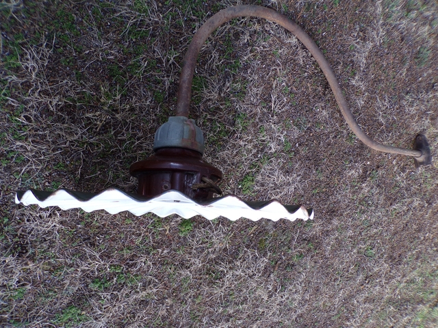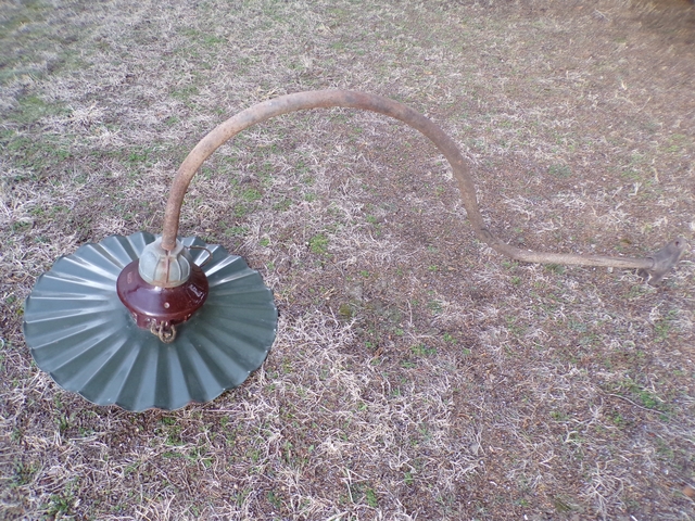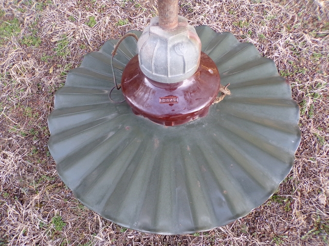Antique light fixture with cool fluted porcelain shade. Porcelain shade is 20" diameter. I imagine it will need rewired / restored. Call 6206176644 - emails & texts are usually ignored as a scam.
