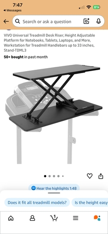 Height Adjustable platform securely fits over the treadmill handlebars. Allows you to multitask in style and comfort.