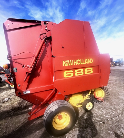 FOR SALE IS A USED NEW HOLLAND 688 ROUND BALER. THIS IS A TWINE TIE BALER THAT IS IN ABOVE AVERAGE CONDITION. THIS WOULD MAKE A GREAT LOW COST WAY TO PUT UP ROUND BALES. 2000 YEAR MODEL