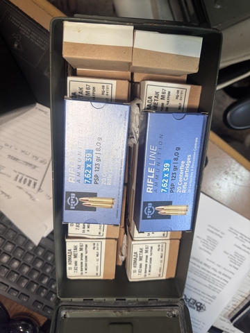 2,810 rounds of 7.62X39 ammo for sale. 4-50cal ammo cans of mostly steel, some brass case. Pick up in Hesston.