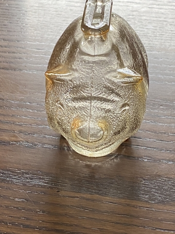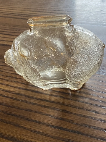 I have a vintage glass piggy bank. I believe it’s made by Anchor Hocking company. These were made in the 1940s or 50s. The outside of it is textured and is an amber color. These were made without any kind of a stopper. It just has the coin slot on top to put coins down into. Back then we were supposed to break these open to get the coins out however, if you’ve got a lot of patience, you can actually tip it back-and-forth and eventually start getting the coins to slide out the top which is how I got this one emptied lol! There are no chips or cracks or other defects on this item. It is located in McPherson Kansas. I’m asking $15 or best offer for it. Please feel free to contact me with any questions.