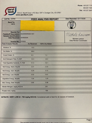 Good quality, baled up with no rain, BMR, low nitrate. 110 available $70 ton