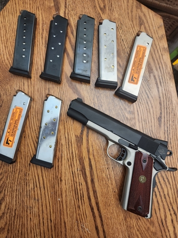Rock island 1911 45 acp only shoot a few times been in safe ever since. Main reason for selling it is getting to many calibers and need to thin some out.....it comes with 7 mags and over 500 rounds of ammo.