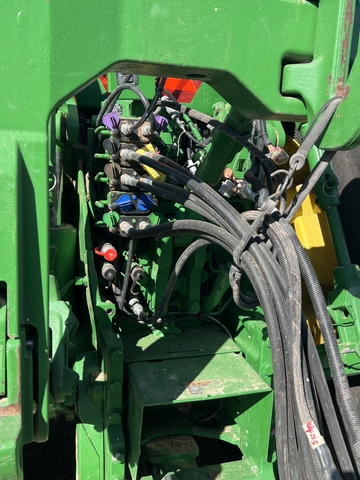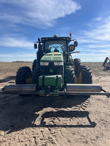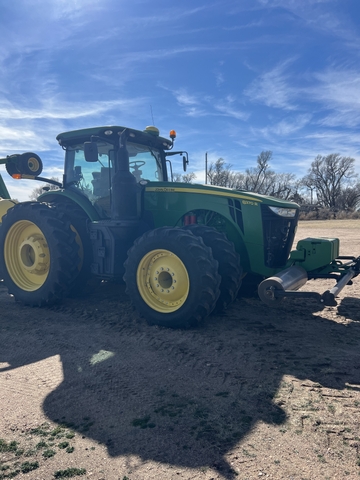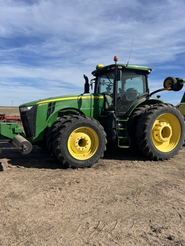 2017 John Deere 8370R tractor 4235 hours, front duals, hydraulic stalk stomper, 5SCV remotes, dual cab screens, MFWD, Powershift. Routine annual winter inspection and maintenance at local John Deere Dealerhsip. Service work detail available upon request.