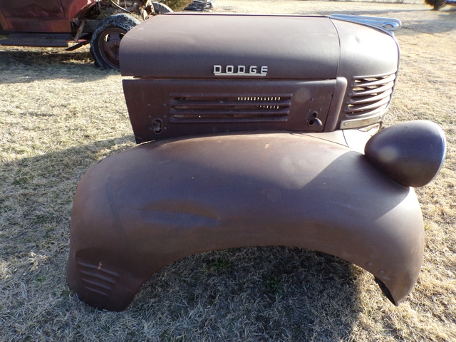 Complete front clip from 1947 Dodge truck. Restore / Rat Rod / Yard art ?? Call 6206176644 - emails & texts are usually ignored as a scam.