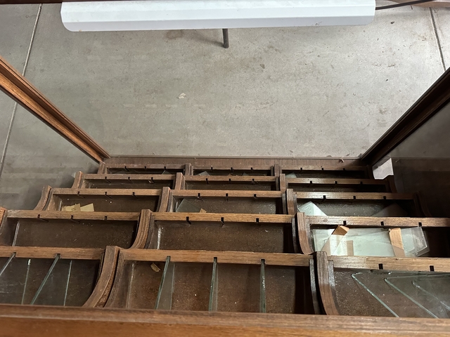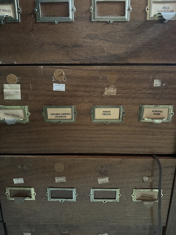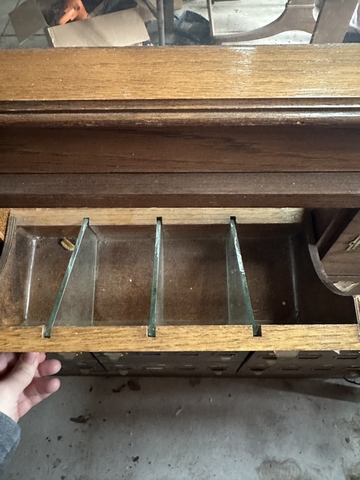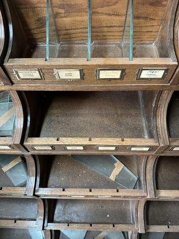Late 1800’s ? Country Store Candy Display case/curio cabinet. 50” wide 26” deep 42” tall Wood and glass display case With wood drawers and glass dividers. It is lighted. Missing top piece of glass. It’s two pieces- the drawer unit is removeable Located in Norton Ks