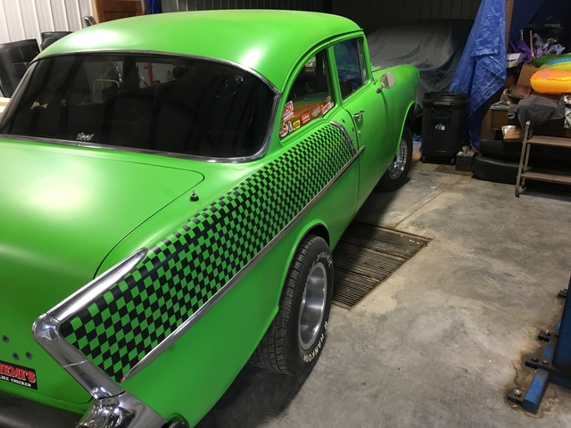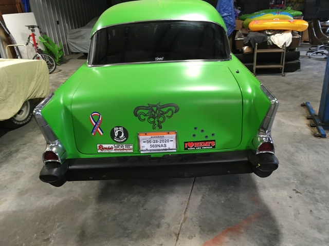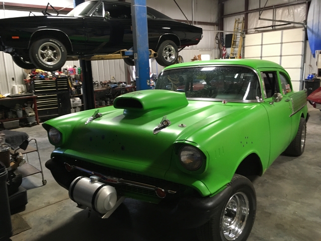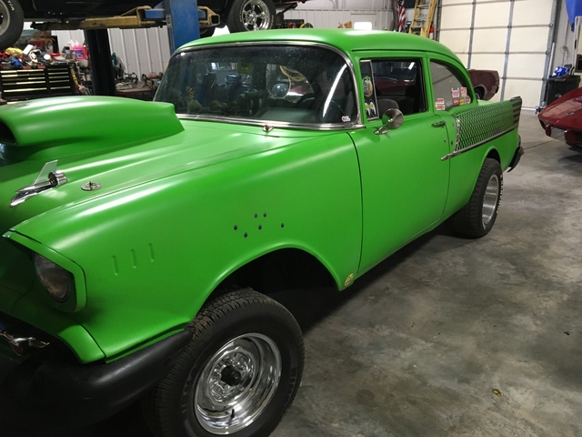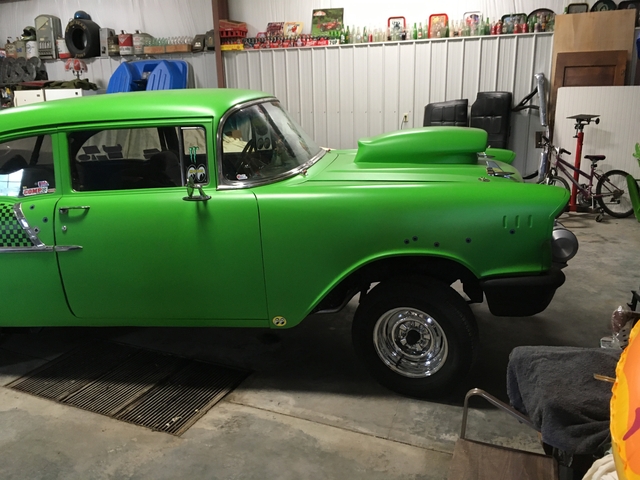 57Chevy gasser 383 stroker automatic on the floor shifter air shocks straight axle front end gets a lot of attention 785 six seven 5 eight 4 one 2