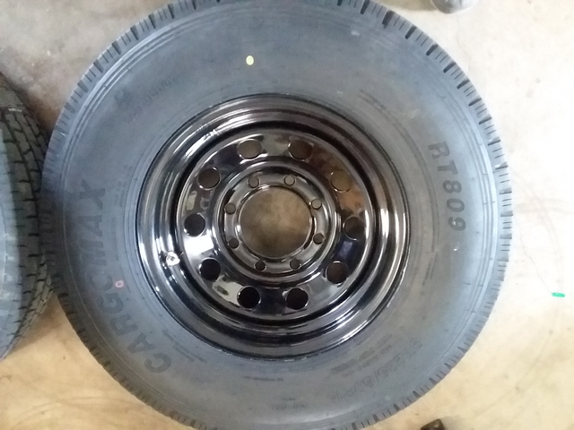 MOUNTED ON HEAVY DUTY U.S.A. 4,400 LBS. 8 LUG RIM $245.00