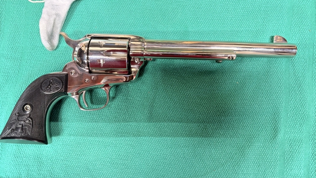 For sale is a Colt Single Action Army in .45 Colt with the 7.5" barrel and factory nickel finish. This is a 1997 production 3rd Generation SAA (serial S15339A) in 98% condition. All original, no refinish, no aftermarket parts.