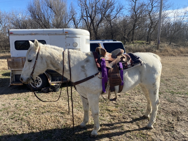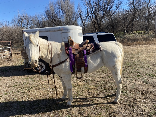 Grey Horse is an 04 Model AQHA registered Gelding, Hancock bred. He has worked on ranches (though it's been a while since hes been roped off of.) I used him in the feedyards for a while, now he is mostly used for trail rides. He is NOT a beginner-friendly horse.