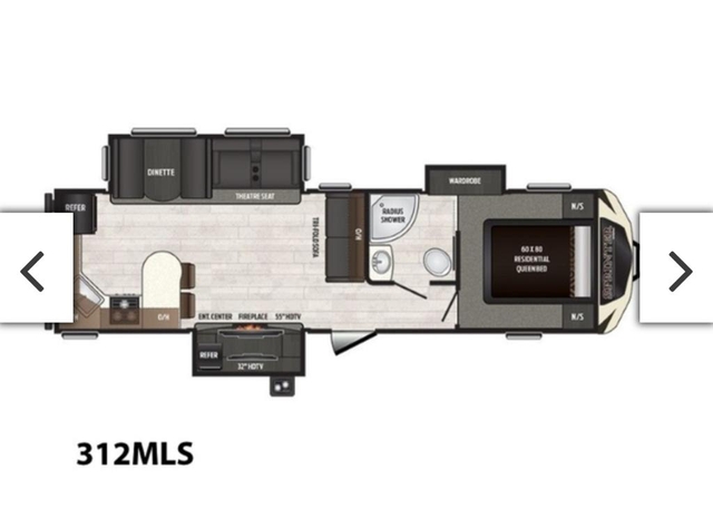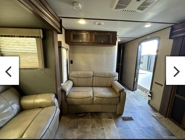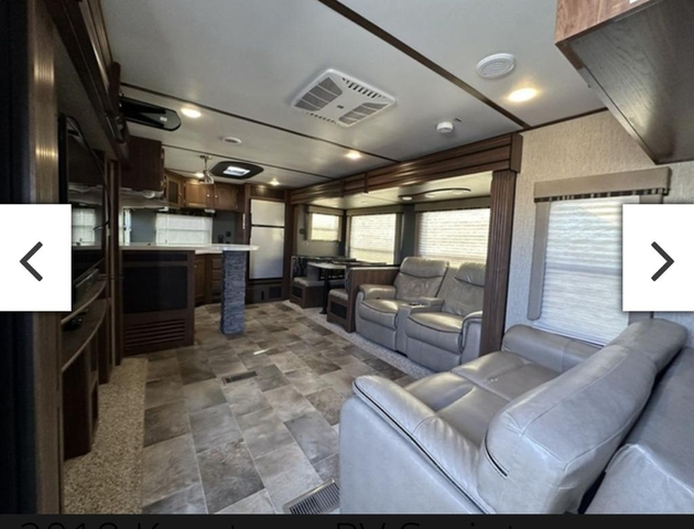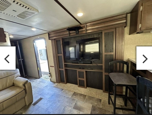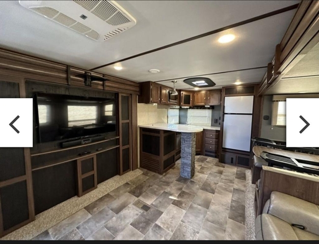 RV was lived in for 9 months of the year for 3 years every thing works as it should. Propane heater, 2 Colmen Mach air conditioners, rv refrigerator gas, 110v, (new on demand hot water heater in 2025.) have torsion tow hitch to go with it, 3 slide outs, outdoor kitchen, has not been towed since 2024