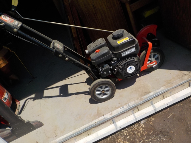 A very nice lawn edger, only one owner, used less than 10 hours and has been housed in a garage. The edger’s features are: 6HP/169cc Subaru SP series 4-cycle engine, 4-position cutting height adjustment, 110 degree pivot head rotation for edging, trimming or beveling, 3 wheels, laterally adjustable front wheel, front wheel drops for easy edging along the curb, recoil start system, and easy lift transport handle. . CASH ONLY - $385.00. Arrangements for you to haul will be made at the time of sale. It is located in Palco.