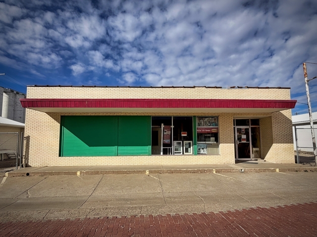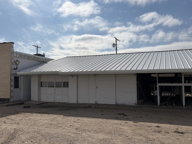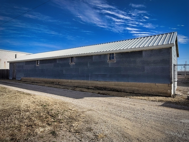 The site includes three frontage buildings with brick facades and block construction, creating a solid and recognizable street presence. Several covered, fenced storage areas enhance usability for materials, equipment, or outdoor operations. Metal roofs were replaced in 2017 on all buildings except the main structure.